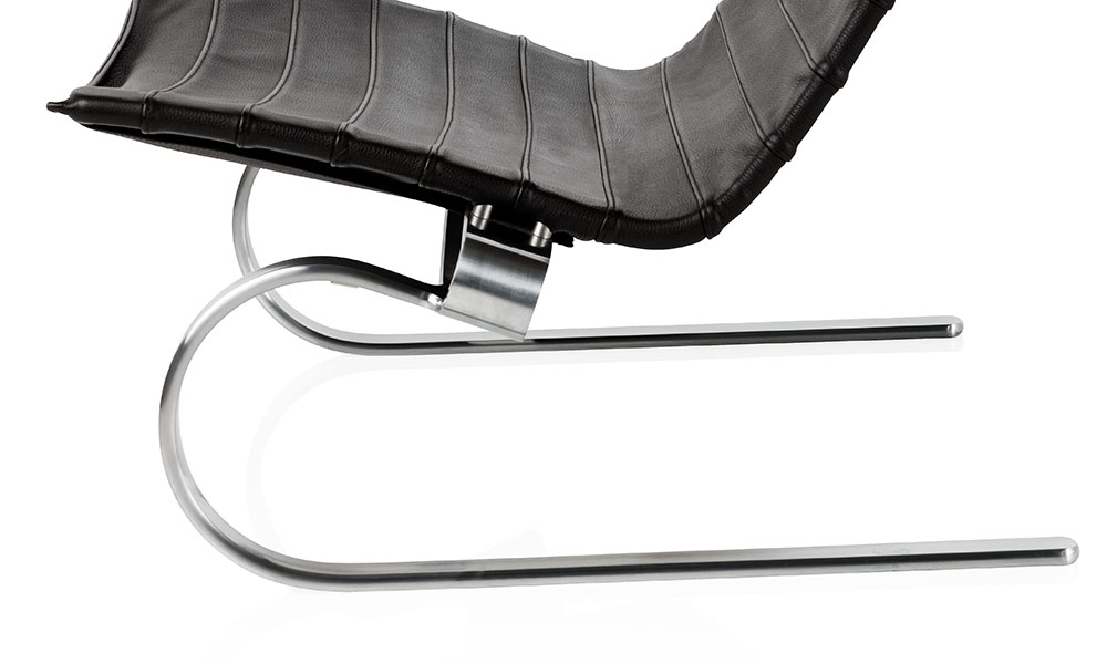 PK20の籐と革のモデルは共に柔軟性のあるマットクローム・スプリングスチールのベースに支えられています。革のモデルには革張りのヘッドレストがついており、シートの革が何枚も縫い合わされているのは、PK22 の製造時に余った革(※)を再利用していました。(※現在は異なります。)