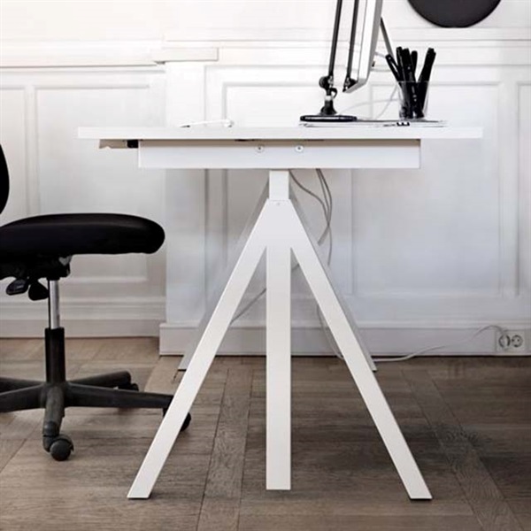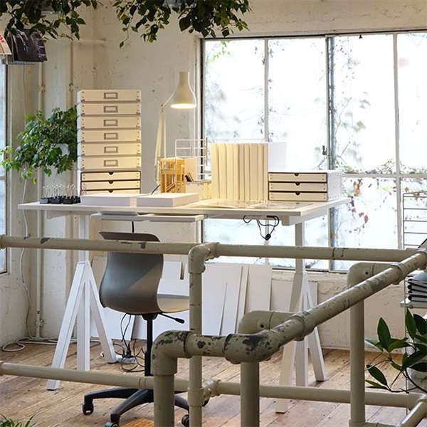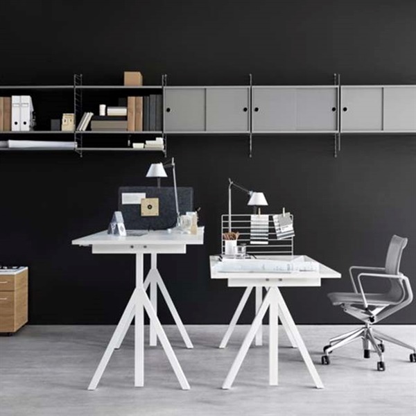 ストリングの昇降式デスクはステッピングモーター機能により、ボタンひとつで高さ715~1185mmのお好みの位置に調節できます。 立ったり座ったりしながら仕事をしたり、一人ひとりの体格に合わせた 高さでデスクを使え、仕分けや物の整理をする際は、 作業に最適な位置で効率よく進められます。前後のないデスクなのでミーティング用に、または自宅のダイニングテーブルとしても違和感はなく、簡単な会議なら立ったまま、仕事が終わってちょっとした カクテルパーティーを開く際にはバーカウンターとしてもオススメです。パーテーションや引き出しをオプションで取り付けることが可能です。