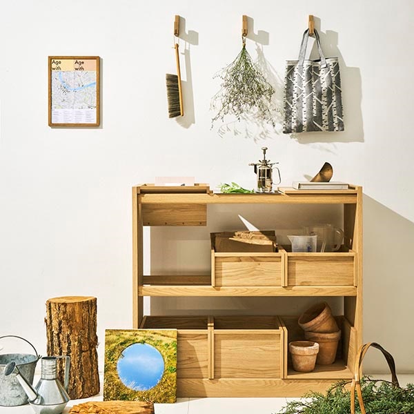 SOSEI PROJECT.は、「70%プロダクト」という発想にあります。完成度をあえて70%にとどめることで、残りの30%をユーザーの感性や思考に委ね、唯一無二の空間づくりを可能にします。本を斜めに立てて収納できる「ブックトレイ」。同シリーズのキャビネットにセットして使えるほか、取り外してそのままテーブルやデスクに置けば、ブックエンドとしても使えます。