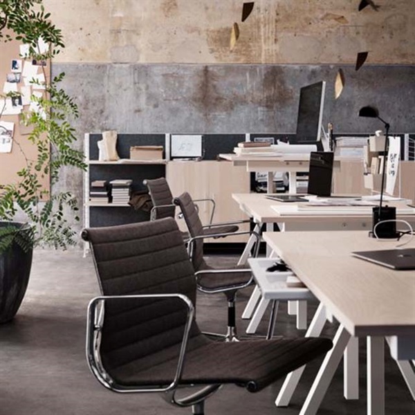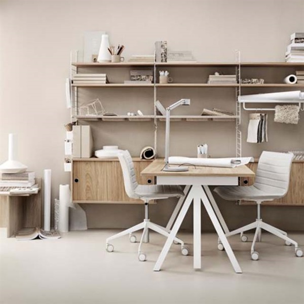 ストリングの昇降式デスクはステッピングモーター機能により、ボタンひとつで高さ715~1185mmのお好みの位置に調節できます。立ったり座ったりしながら仕事をしたり、一人ひとりの体格に合わせた高さでデスクを使え、仕分けや物の整理をする際は作業に最適な位置で効率よく進められます。前後のないデスクなのでミーティング用に、または自宅のダイニングテーブルとしても違和感はなく、簡単な会議なら立ったまま、仕事が終わってちょっとしたカクテルパーティーを開く際にはバーカウンターとしてもオススメです。パーテーションや引き出しをオプションで取り付けることが可能です。