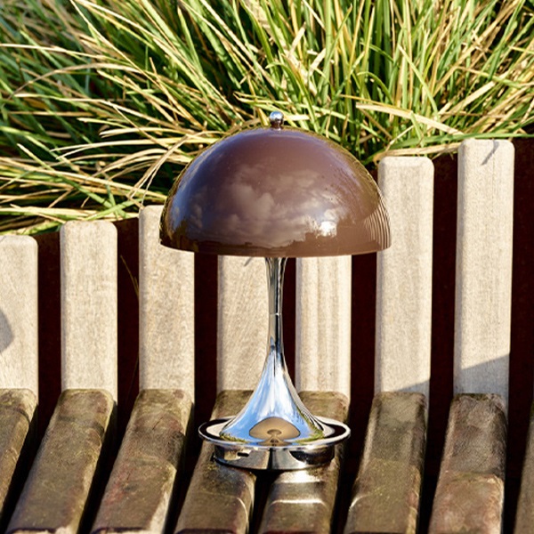 どんな空間も調和のとれたグレアフリーの光で満たし、パントンのデザインを屋外でも楽しむことができます。下方へ光を放ち、その光はトランペット形のベースで反射され、柔らかく輝き、繊細な光で空間を照らします。一度充電すればどこへでも簡単に持ち運べ、住宅の庭やバルコニー、レストランの前など、電源のないあらゆる場所で、心地よい特別な雰囲気を作ることができます。