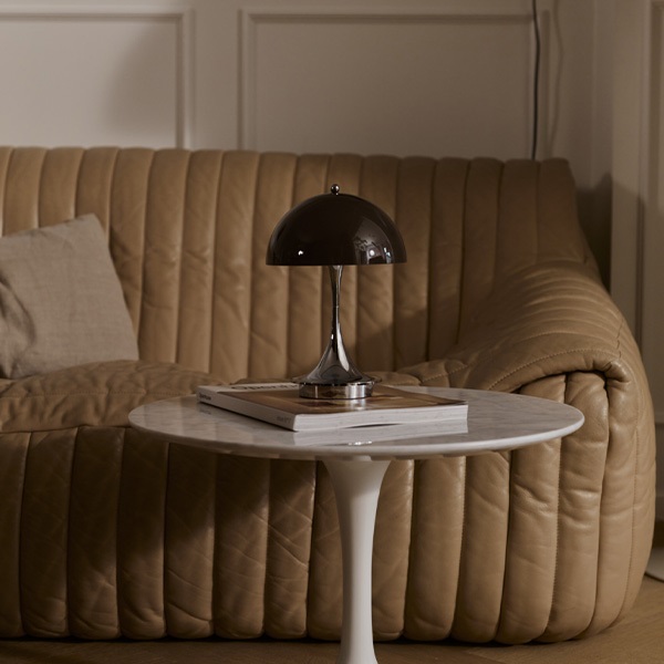 2020年に誕生したオリジナルのモデルをそのまま小さくして充電式とした「パンテラ ポータブル」は、コードレスのため持ち運びが可能で、北欧らしい暖かい雰囲気をどこでも楽しむことができます。