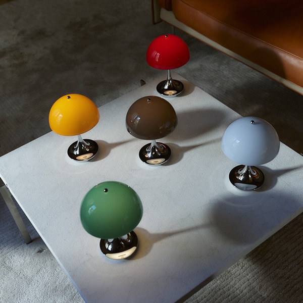 1971年、ヴァーナー・パントンはルイスポールセンと共同でドーム型をしたランプ、「パンテラ」を開発しました。彫刻的なフォルムをしたこのランプは、周囲を優しく照らし、居心地の良い空間をつくりだすように設計されました。