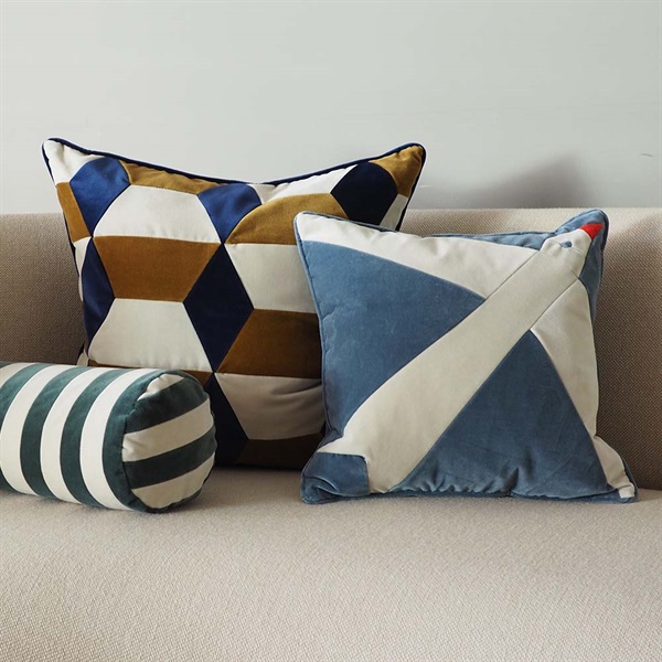 ファブリックには、ヨーロッパで厳選したなめらかな綿100%ベルベットを使用。ひとつひとつ丁寧にハンドメイドで仕上げられたパッチワークは、デザイナーのこだわりとクラフツマンシップの証です。 美しいパターンと色の組み合わせは、ソファやベッドの上で空間に楽しさと上品な高級感をプラス。肌触りも心地よく、くつろぎの時間をさらに贅沢に演出します。