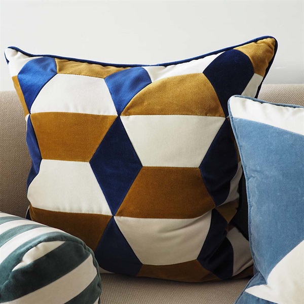 ベルベットクッション スーザン 55×55cm /キャラメル×ダスティホワイト×ダークブルーChristina Lundsteen / クリスティーナ ランドスティーン