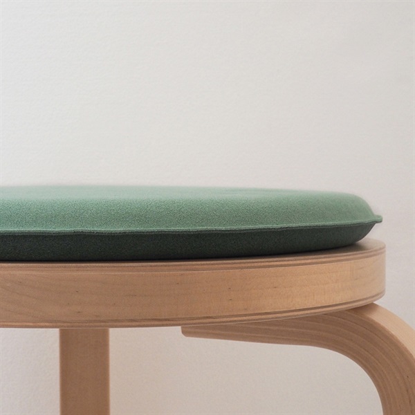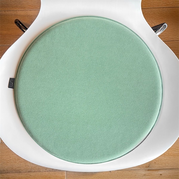 セブンチェア、イームズチェア、アルテックチェアなど、さまざまな名作チェアにフィットする直径約35cmの円形クッションです。椅子にポンと置くだけで、見た目の印象を変えながら、座り心地もやさしくサポートします。