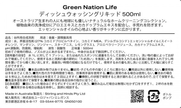 「ディッシュウォッシングリキッド 500ml / スイートオレンジ&レモングラス」の在庫がありません。