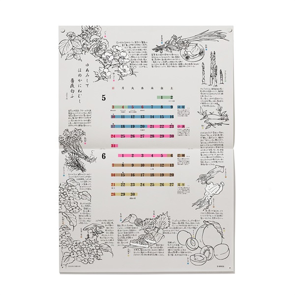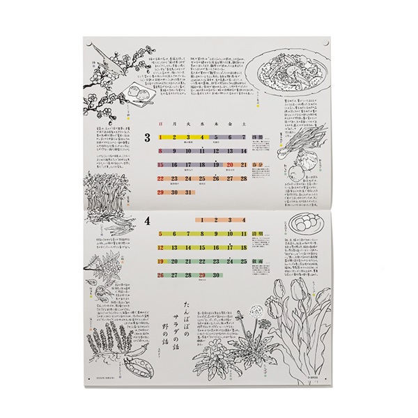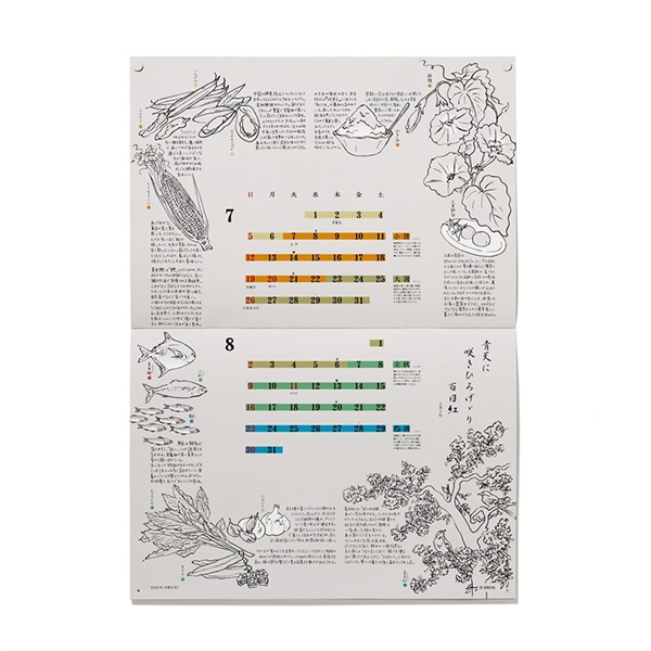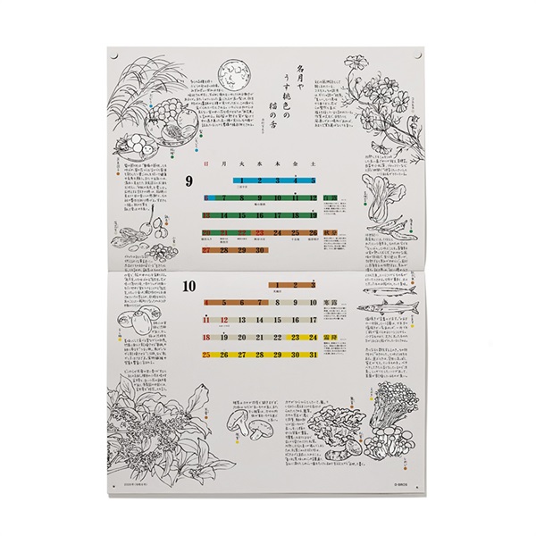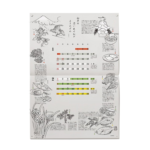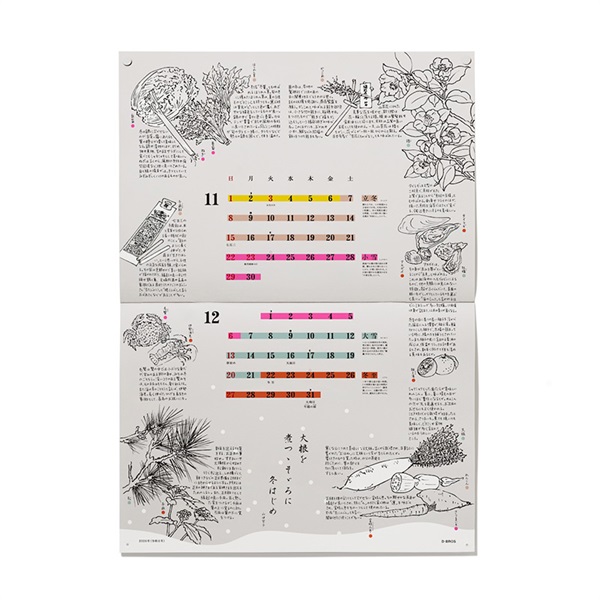 節気ごとに移り変わる旬の食べ物や草花、季節の行事など、現代の生活にも直結する役立つ情報が盛り込まれ、何気なく過ごしている生活の中にたくさんの自然の恵みがあるということを気づかせてくれるカレンダーです。D-BROSの「二十四節気カレンダー」と一緒に1年の季節の移り変わりをお楽しみください。