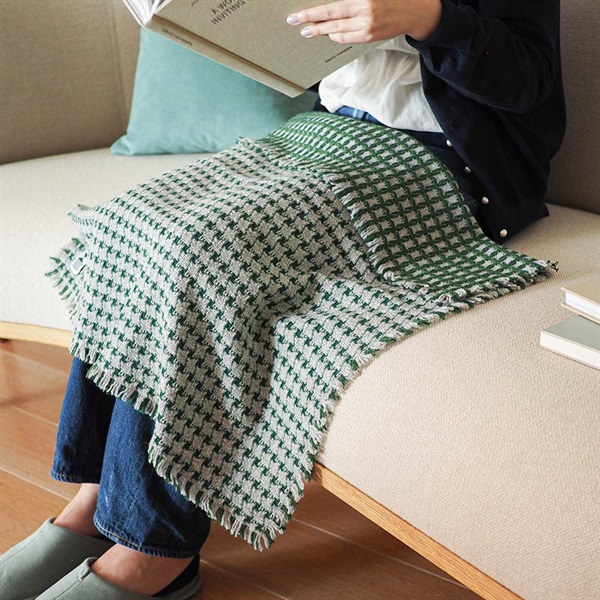 スクエア型ならではの扱いやすさと、バッグにすっと収まるコンパクトさ。寒い日にはバッグに忍ばせて、ひざ掛けとしても活躍します。