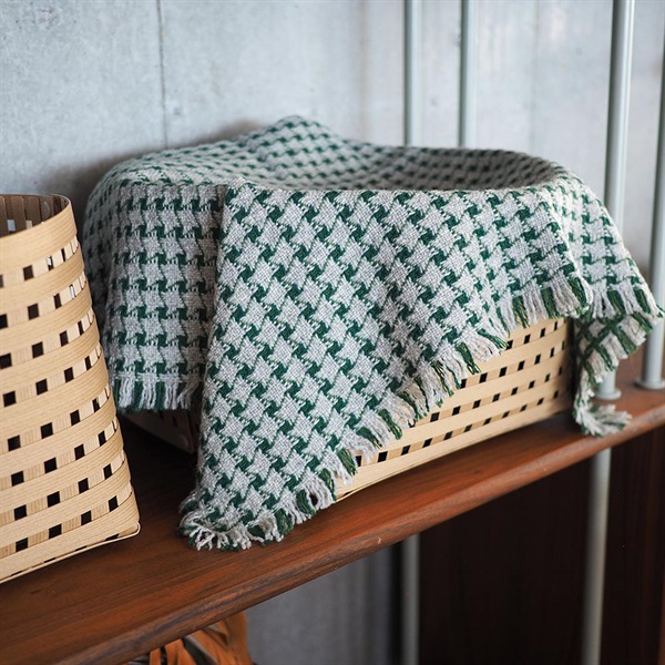 椅子やソファにふわりと掛けるだけで、日常の風景が少し豊かになります。織りの美しさと色のニュアンスが、空間にやさしいアクセントを添え、使わないときもそこにあるだけで絵になる一枚です。季節の移ろいや気分に合わせて、インテリアの一部として自由に楽しめるのも魅力。棚やバスケットの目隠しとして使えば、空間に柔らかな印象を与え、日常をさりげなく彩ります。