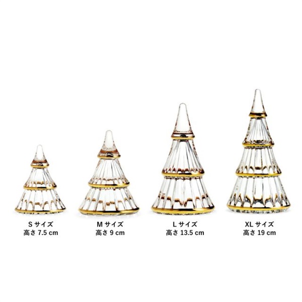 1つでも、サイズ違いで並べても、クリスマス気分を上げてくれるクリアガラス製のクリスマスツリー。ゴールドの部分は1点づつハンドペインティングされています。ガラスとゴールドの組み合わせは、様々なテーブルデコレーションを引き立てます。ツリーの内側にはウェーブが施され、美しい光の屈折を生み出し、窓辺やキャンドルの近くに置いて使っても。