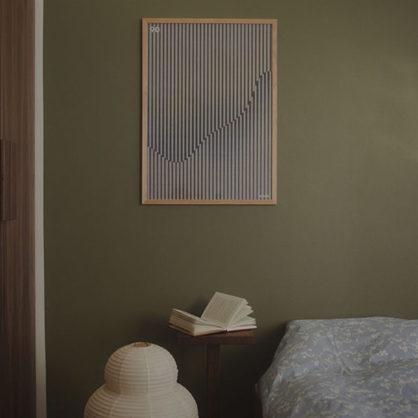 ポスターは、アルヴァ・アアルトが1936年にデザインした名作「スクリーン100」からインスピレーションを得ています。青と黒のインクを層状に重ね、さらにレーザーカッターで多方向から彫刻的に刻むという実験的なシルクスクリーン印刷を採用。「スクリーン100」の波打つフォルムを、新たな視点から再解釈しました。