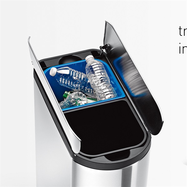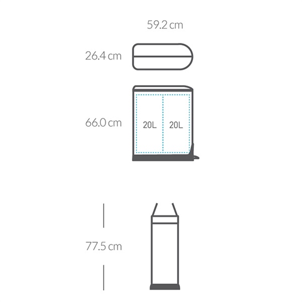 20L+20Lの2コンパートメント仕様で、リサイクルと一般ゴミをひとつにまとめて管理できます。