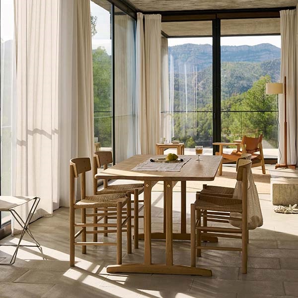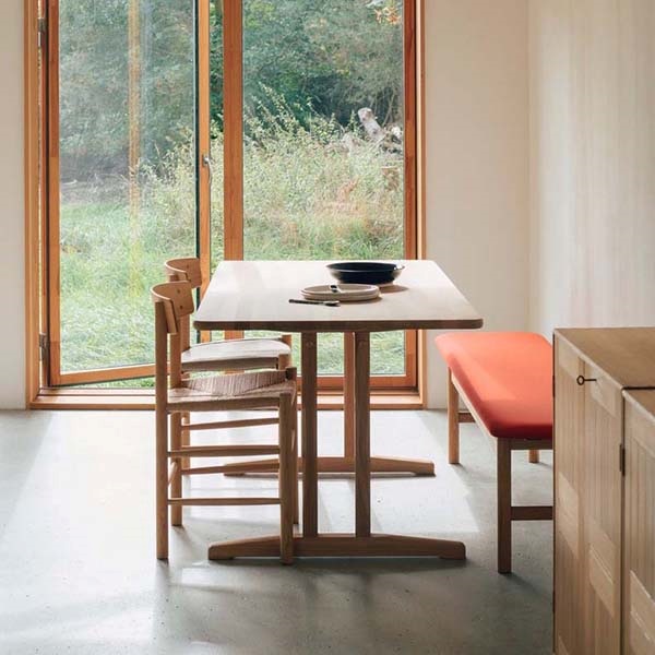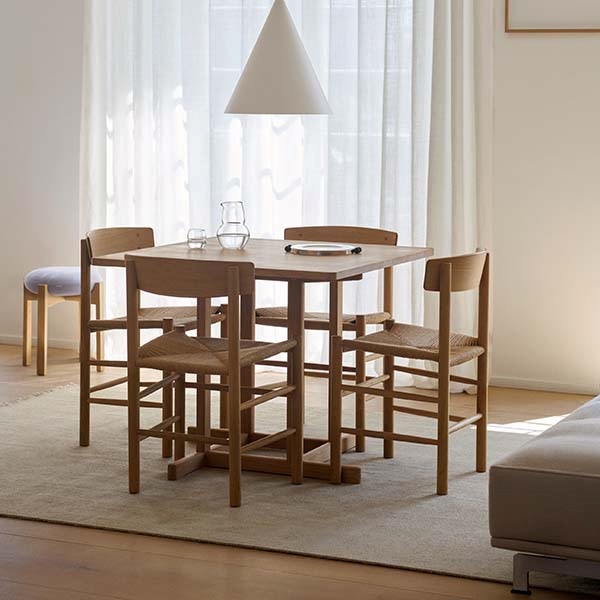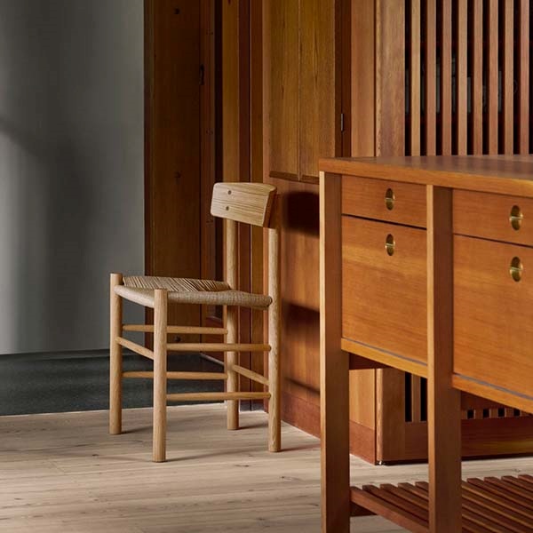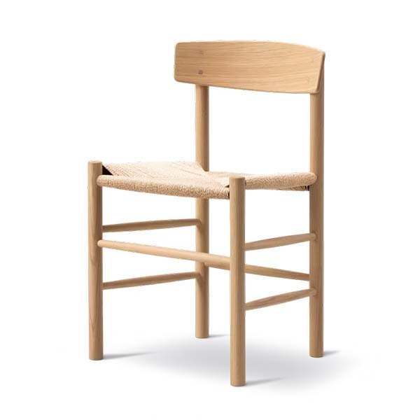 1947年の誕生以来、J39 チェアは 「People’s Chair(ピープルズチェア)」として、あらゆる人の暮らしに寄り添ってきたデンマーク家具の名作です。無垢材のフレームに、職人の手で丁寧に編み上げられたペーパーコードの座面を組み合わせた構造は、素材への誠実さと、北欧家具ならではの確かなクラフトマンシップを感じさせます。デザイナーであるボーエ・モーエンセンが掲げた「すべての人のための家具」という思想、そして彼が生涯追求した“デザインの純度”が、この一脚にはそのまま息づいています。シェーカー家具に着想を得た素朴で機能的な佇まいは、時代や流行に左右されない普遍性を持ち、公共施設、大学、カフェ、レストラン、そして個人の住まいまで、幅広い空間で愛され続けています。「人々のための椅子」という名にふさわしく、J39 は丈夫で長く使える構造を備え、使い込むほどに味わいが深まる、暮らしとともに育つ北欧チェアです。