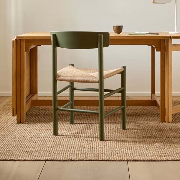 1947年の誕生以来、J39 チェアは 「People’s Chair(ピープルズチェア)」として、あらゆる人の暮らしに寄り添ってきたデンマーク家具の名作です。無垢材のフレームに、職人の手で丁寧に編み上げられたペーパーコードの座面を組み合わせた構造は、素材への誠実さと、北欧家具ならではの確かなクラフトマンシップを感じさせます。デザイナーであるボーエ・モーエンセンが掲げた「すべての人のための家具」という思想、そして彼が生涯追求した“デザインの純度”が、この一脚にはそのまま息づいています。シェーカー家具に着想を得た素朴で機能的な佇まいは、時代や流行に左右されない普遍性を持ち、公共施設、大学、カフェ、レストラン、そして個人の住まいまで、幅広い空間で愛され続けています。「人々のための椅子」という名にふさわしく、J39 は丈夫で長く使える構造を備え、使い込むほどに味わいが深まる、暮らしとともに育つ北欧チェアです。