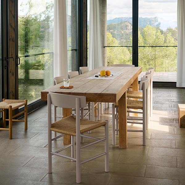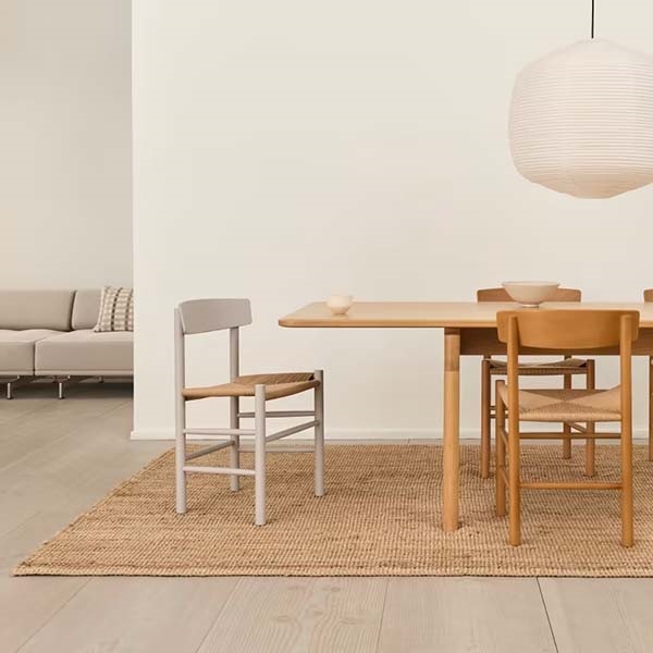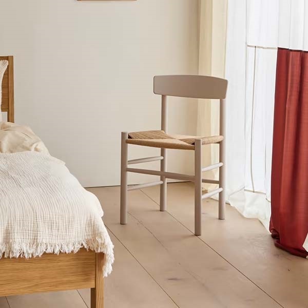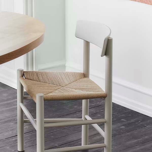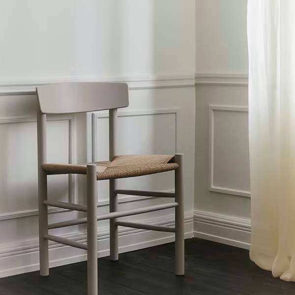 1947年の誕生以来、J39 チェアは 「People’s Chair(ピープルズチェア)」として、あらゆる人の暮らしに寄り添ってきたデンマーク家具の名作です。無垢材のフレームに、職人の手で丁寧に編み上げられたペーパーコードの座面を組み合わせた構造は、素材への誠実さと、北欧家具ならではの確かなクラフトマンシップを感じさせます。デザイナーであるボーエ・モーエンセンが掲げた「すべての人のための家具」という思想、そして彼が生涯追求した“デザインの純度”が、この一脚にはそのまま息づいています。シェーカー家具に着想を得た素朴で機能的な佇まいは、時代や流行に左右されない普遍性を持ち、公共施設、大学、カフェ、レストラン、そして個人の住まいまで、幅広い空間で愛され続けています。「人々のための椅子」という名にふさわしく、J39 は丈夫で長く使える構造を備え、使い込むほどに味わいが深まる、暮らしとともに育つ北欧チェアです。