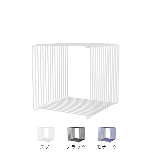 1971年にヴァーナー・パントンがデザインした Panton Wire / パントンワイヤー は、無骨さと軽やかさを併せ持つワイヤーシェルフシリーズです。インダストリアルな表情でありながら、空間に抜け感をつくるミニマルな佇まいが魅力。奥行きやカラーのバリエーションが豊富で、単体でも組み合わせても使え、床置き・壁付け・ルームディバイダーなど多彩なレイアウトに対応します。本体は5mmワイヤーで構成され、脚・クリップ・壁付けブラケットが付属。オプションでガラス棚板やMDF棚板、さらに大理石やラッカー仕上げのトップパネルを追加でき、用途や好みに合わせて表情を変えられます。耐荷重は、幅348mmタイプで床置き最大40kg・壁付け最大10kg(壁付けブラケット使用時)。複数モジュールを組み合わせる場合は、棚板の併用が推奨されています。シンプルな構造ながら、自由度の高い組み合わせと素材の美しさで、空間に軽やかなアクセントを添えるシリーズです。