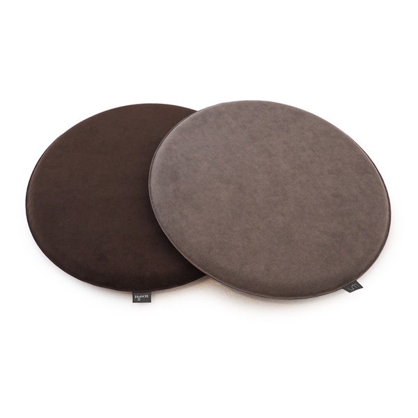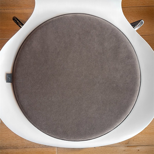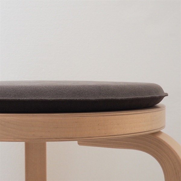 セブンチェア、イームズチェア、アルテックチェアなど、さまざまな名作チェアにフィットする直径約35cmの円形クッションです。椅子にポンと置くだけで、見た目の印象を変えながら、座り心地もやさしくサポートします。