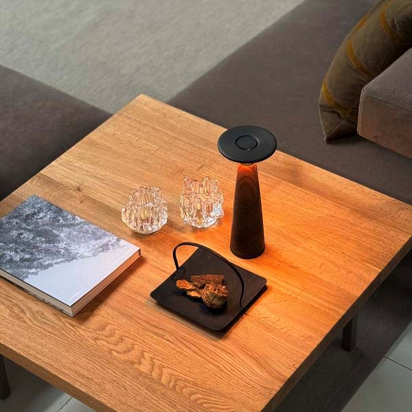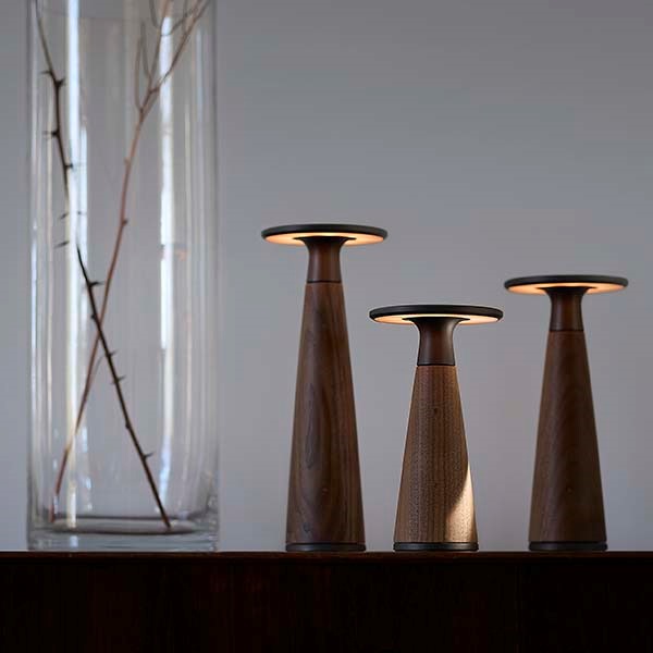 Voscoは、木材に負担をかけない内部構造を採用し、パーツごとの修理や交換が可能な設計を実現したポータブルライトです。長く使い続けられるサステナブルな木製照明として、日常に寄り添います。