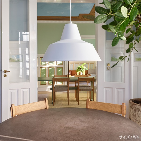 ワークショップランプは、A. Wedel Madsen(ヴェデル・マッドソン)によって1951年にデザインされ、MADE BY HANDがその製造を受け継ぐロングセラーの照明です。誕生当時は、素材や技術に精通した職人たちの手元を照らすためにつくられた作業用照明=work shop lamp、その堅牢さと機能性の高さから信頼を集めてきました。やがてその優れたデザイン性が評価され、一般家庭でも愛用されるようになり、現在ではデンマークデザインを代表するプロダクトのひとつとして知られています。製造は今もなお、デンマーク国内の熟練した職人の手によって、一つひとつ丁寧に行われています。ソケットを深く覆う特徴的なシェードは、電球の眩しさを抑えながら、快適で落ち着いた光を届けてくれます。下方向に広がるやわらかな光は、ダイニングテーブルに親密な雰囲気を生み出し、家族や友人との時間を心地よく包み込みます。機能性と美しさを兼ね備えた、時代を超えて愛される北欧の名作ランプです。