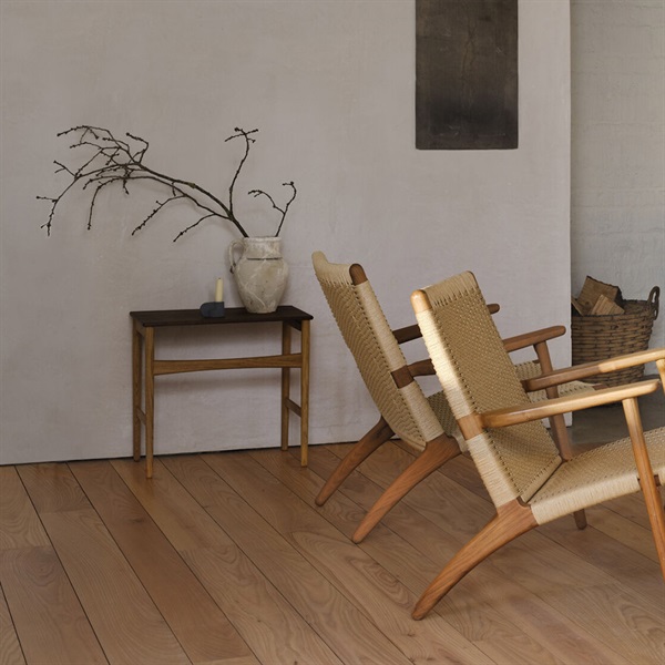 必要に応じて個別に使ったり、並べてコーヒーテーブルとして活用したり、室内に小さなコーナーをこしらえたりと、柔軟な使い方が可能です。丸みを帯びた先細りの脚や繊細なカーブを描く支柱、伝統的なほぞ継ぎなど、ウェグナーらしいディテールが随所に光り、軽やかでオーガニックな佇まいを生み出します。控えめなデザインはどんなインテリアにも自然に溶け込み、使わない時も美しく収まるのが魅力です。素材にはFSC™認証を受けたオーク材やウォルナット材を採用。持続可能な資源を活かした確かなクラフトマンシップで仕上げられたこのテーブルは、現代の暮らしにもフィットし、空間に軽快さと心地よさを添えてくれます。