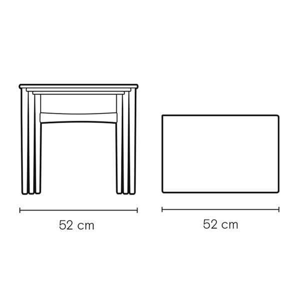 1952年にハンス J. ウェグナーがデザインした「CH004 ネスティングテーブル」は、サイズの異なる3台を入れ子式に重ねて収納できる多用途なサイドテーブルセットです。