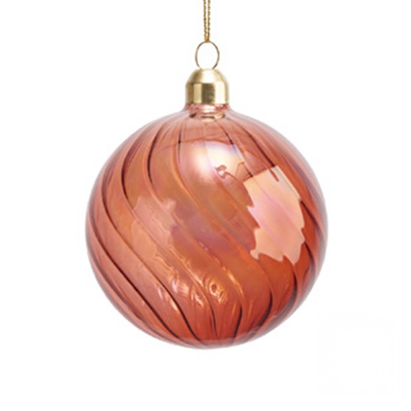 深いレッドカラーの透明感が美しいガラスボールオーナメント。ストライプのラインがアクセントとなり、シンプルながら高級感のある仕上がりです。直径8cmの存在感あるサイズで、90cm以上のクリスマスツリーに映える定番アイテム。ゴールドやグリーンと合わせればラグジュアリーな華やかさを、ピンクやシルバーと組み合わせれば全体を引き締めるアクセントカラーとして活躍します。クラシカルにもモダンにも取り入れやすい、万能なオーナメントです。