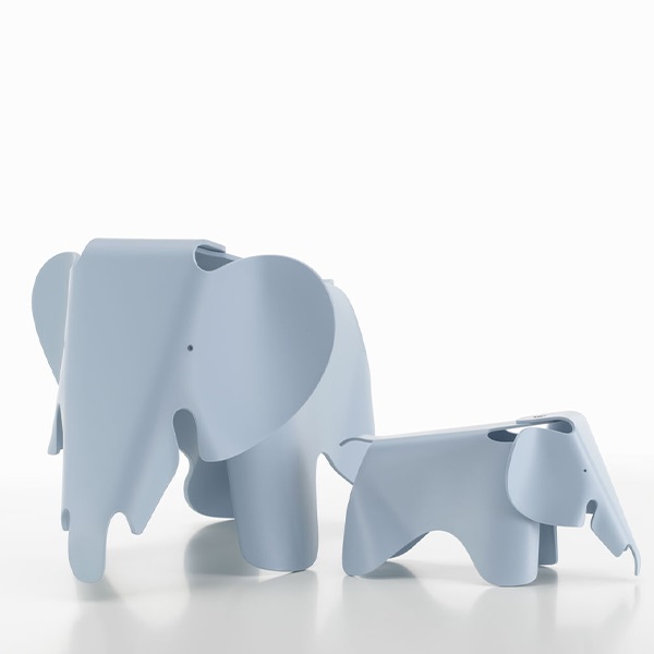 1945年、チャールズ&レイ・イームズ夫妻はプライウッド成形技術を用いて、愛らしい象のオブジェ「イームズ・エレファント」をデザインしました。子どものおもちゃとしても、インテリアのオブジェとしても、世代を超えて人々を楽しい気持ちにさせてくれる存在です。