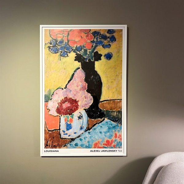 こちらは「Still life with schwarzer vase (1909) / Museum wiesbaden」に合わせた、専用サイズのラーソン・ジュール製フレームです。余計な装飾を排したデザインは、飾らないからこそ際立つ普遍的な美しさを持ち、アートそのものを引き立てます。