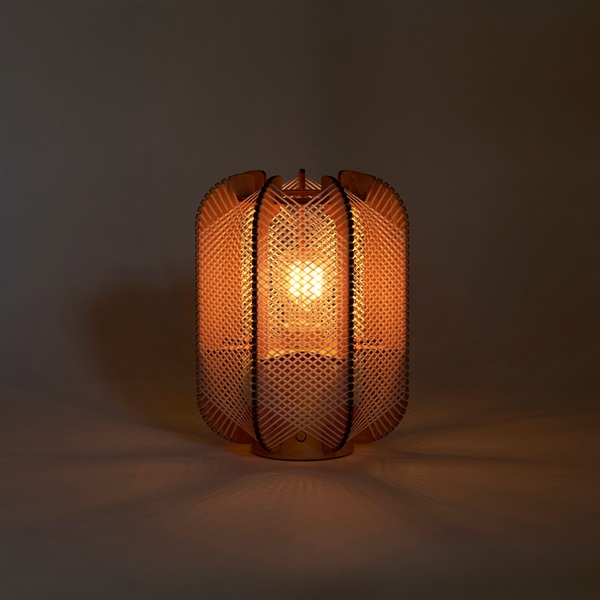 コードレスで家中どこへでも持ち運べる、シリンダーシルエットのポータブルランプ「PILLSI」。厚さ5mmの薄板に細やかなスリットを施し、そこに細いロープを張り巡らせることで、温もりと緊張感を併せ持つ独創的なデザインを実現しました。