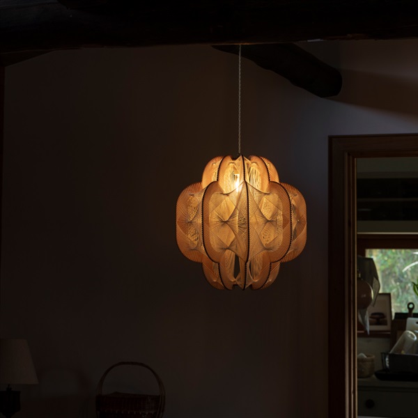 温かみのある素朴でシンプルな構成ながらも存在感のあるライトは、ダイニングではもちろんリビングや寝室、あらゆる空間を華やかにしてくれます。小ぶりなサイズは玄関など小さなスペースでの活用もオススメです。