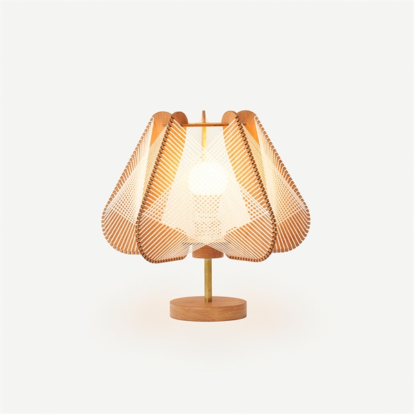 クロスしたリボンを透過する光は、やわらかな陰影を描き出し、点灯時と消灯時で異なる表情を楽しませてくれます。コンパクトなサイズ感のため、ナイトテーブルやデスクなど限られたスペースに最適。就寝前のリラックスタイムや読書灯としても活躍します。